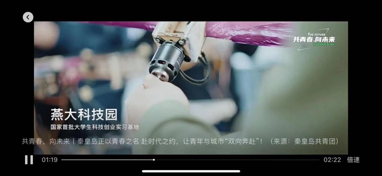 在第75个五四青年节即将到来之际,共青团秦皇岛市委《共青春 向未来》宣传视频在秦皇岛发布展示,报道秦皇岛以青春之名,赴时代之约,青年与城市“双向奔赴”的激情活力。宣传片中对燕大科技园进行了拍摄报道,并着重展现了科技园创客学院聆微电子、蓝天翼者两个团队青年创客人才的活力四射和创新精神。